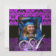 PURPLE BLACK GRADUATION DAMASK MONOGRAM , violet Invitation