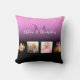 Purple black photo collage name monogram throw pillow