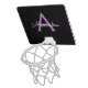 Purple Black Script Girly Monogram Name Mini Basketball Hoop