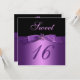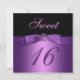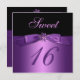 Purple Black Sequin Flower Bow (PRINTED) Sweet 16 Invitation