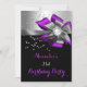 Purple Black Silver Bow Pearl Birthday Party Invitation