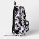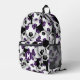 This cool soccer backpack features varied size purple, black and white soccer balls turned every which way in a 3D-look pattern on a black background - customize with the soccer player's monogram - by katz_d_zynes
