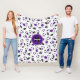 This cool team colors soccer fleece blanket for girls or boys features a pattern of varied size soccer balls turned every which way - some of the black panels on the soccer balls have been recolored purple - customize with soccer player's name and monogram or jersey number - by katz_d_zynes