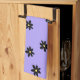 Chic purple and black flower pattern kitchen towel featuring stylish tropical blooms, whimsical botanical motifs, and retro spring summer charm for a dramatic nature-inspired accent.