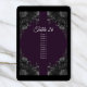 Elegant dark grey floral with dark purple background wedding table escort seating chart cards are lovely for a gothic wedding look with a black backside. The flowers adorn the corners for an elegant, modern and sophisticated look.
