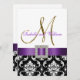 Sophisticated elegance is conveyed by this beautiful wedding invitation design. A black and white floral damask pattern serves as a background for a photo effect of the Metallic Gold Initial M and a purple satin ribbon and diamond brooch ALL PRINTED on FLAT CARD Wedding Invitations. A perfect way to invite your guests to your wedding. Contemporary, yet classic damask pattern with a design which allows you to personalize the front with your names and the back is free to add your customized wedding invitation text. Wedding Invitation is set for monogram initial "M". For other letters and colours please contact designer at luxuryweddinginvitations@gmail.com. Layout Design by Elke Clarke©. Graphics licensed. Also, choose from a variety of fonts and beautiful papers to make your wedding invitations PERFECT!
