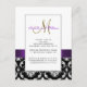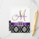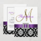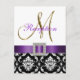 Purple Black White Damask Wedding Reception Card