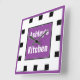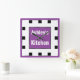 Modern 10.75" x 10.75" wall clock with purple and black squares, personalized with your own text, and a perfect custom touch for any kitchen, bedroom, dorm room, etc.