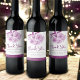 Customize these purple double blossom wedding party thanks wine labels with your own thank you message and names and wedding date. © Watercolor spring blossom art and design by Sarah Trett for www.mylittleedenweddings.com