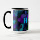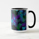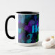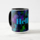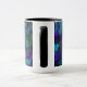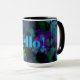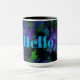 Purple, Blue, Green and Black art began as a photo of a peacock's colorful feathers and transformed into this colorful Hello! coffee mug.