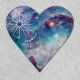 Gas and dust particles swirl around in outer space creating beautifully colored clouds occupying the space between the stars. Acting as a nursery for new stars, this cloud nebula design is light blue and purple. A white astrological pattern with planets and stars has been added on top.