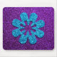 Purple & Blue Glitter Retro Flower Mouse Pad