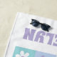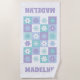 This personalized beach towel features a groovy retro-style daisy in a checkboard pattern in blue and purple. It’s ideal for various outdoor activities, whether you're lounging at the beach, enjoying a vibrant pool party, or having a relaxing picnic in the park. These towels not only serve a practical purpose but also make for a heartfelt gift, as they can be customized with the recipient's name. Treat someone special to a gift that combines functionality with a personal touch!
