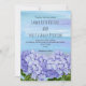 Purple, blue hydrangeas watercolor floral wedding invitation