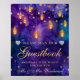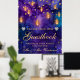 This elegant design features a rich watercolor blend of deep purples and blues, evoking a dreamy twilight sky. Suspended across the top are glowing golden lanterns, each hanging from delicate dotted chains and surrounded by scattered gold dots that add festive sparkle and warmth.