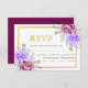 Purple blue watercolor flowers gold frame wedding RSVP card