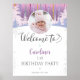 Purple Blue Winter First Birthday Welcome Photo Poster