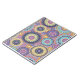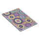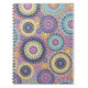 Vibrant purple mandala geometric pattern notebook featuring bold circular medallion designs in teal, yellow, orange, and lavender tones. This stylish spiral notebook is perfect for school supplies, journaling, note-taking, planners, and creative writing. A trendy boho aesthetic notebook ideal for teens, students, teachers, and anyone who loves colorful artistic stationery.