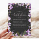 Plain white envelopes are included with paper invitations and will come to fit the invitation size you select. If you don’t need the envelopes, you may choose to not receive them by selecting the dropdown below "Envelopes" and choosing "None." If you’d like to have a design on your envelopes, you can browse all of these available envelopes to find the design that complements your Purple Botanical Garden Bridal Shower Invitation.