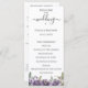Purple watercolor flowers and green botanical branches, wedding program. Program features cute calligraphy "wedding" accent with multiple lines for custom text lists for ceremony order of events, wedding party and thank you note.