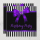 Purple Bow Black White Striped Birthday Party Invitation