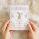 Celebrate your little one’s first birthday using our charming bunny-themed invitation! Featuring a whimsical watercolor bunny holding a lavender balloon, and soft pastel gingham background, this invitation is perfect for a sweet celebration. The elegant yet whimsical design is ideal for spring birthdays, garden parties, or any cheerful first birthday gathering.