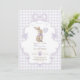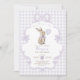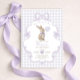 Purple Bow Gingham Bunny Rabbit 1st Birthday Invitation