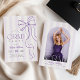 An elegant graduation invitation featuring a personalized photo of the graduate, paired with a refined purple bow illustration and modern striped details.
