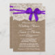 Purple Bow Rustic Burlap & Lace Wedding Shower Invitation