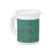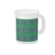 Painting of a pattern of purple brassica flowers on a green background, printed on pitchers.