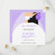 Trendy Save the Date cards with a bride and groom on a purple swirl background.
