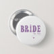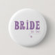 Pretty Bride to Be cards, tote bags, T-shirts, mugs, buttons, and other bride to be items with purple text design and a small purple flower.