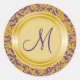 Purple Brocade Pattern Gold Wedding Monogram Classic Round Sticker