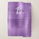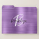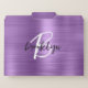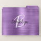 These elegant personalized file folders feature a monogram and first name in modern black and white script on a glam purple brushed metal background.
