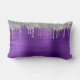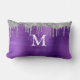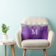 Purple Brushed Metal Glam and Glitter Personalized Monogram Lumbar Pillow. Edit and personalize the design.