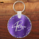 Purple Brushed Metal Silver Glitter Monogram Keychain