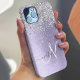 Easily personalize this trendy chic phone case design featuring pretty silver sparkling glitter on a purple brushed metallic background.
