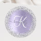 Purple Brushed Metal Silver Glitter Monogram Name Classic Round Sticker