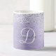 Easily personalize this trendy chic coffee mug design featuring pretty silver sparkling faux glitter on a purple brushed metallic background.
