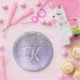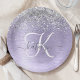 Purple Brushed Metal Silver Glitter Monogram Name Paper Plates