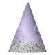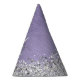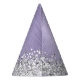 Easily personalize this trendy chic party hat design featuring pretty silver sparkling glitter on a purple brushed metallic background.