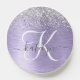 Purple Brushed Metal Silver Glitter Monogram Name PopSocket