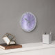 Easily personalize this trendy chic wall clock design featuring pretty silver sparkling glitter on a purple brushed metallic background.