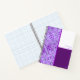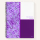 The artist's pattern design of elegant purple butterflies is on the side of the notebook, front and back. On the other is a white and purple square with a purple line in the middle. And the texts can be personalized by the customer.