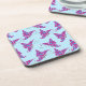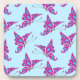Purple Butterflies on Light Blue, Butterfly Print Beverage Coaster