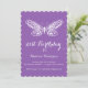 Plain white envelopes are included with paper invitations and will come to fit the invitation size you select. If you don’t need the envelopes, you may choose to not receive them by selecting the dropdown below "Envelopes" and choosing "None." If you’d like to have a design on your envelopes, you can browse all of these available envelopes to find the design that complements your Purple Butterfly 21st Birthday Invitation.