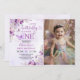 Purple Butterfly Boho Flowers 1st Birthday Photo Invitation