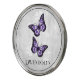 Create a unique gift for the golf lover in your life with a set of Purple Butterfly Floral Personalized Golf Ball Markers. Marker design features a pair of vibrant butterflies resting on a white floral vine against a light gray grunge background. Additional gift items available with this design as well as a variety of colors.