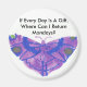 with purple butterfly original art by KRR, magnet asks "If Every Day Is A Gift, Where Can I Return Mondays?"