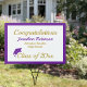 Graduation shout out yard sign with custom front and back design easy to personalize with your own text. Features image of a purple grad cap and your text in a framed rectangle shape. Red, black and other school colors also available in this same design.